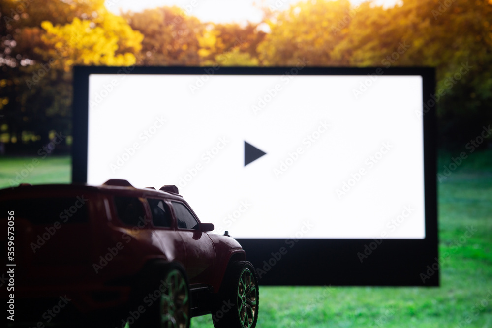 Drive In Theater Or Drive In Cinema Open Air Movie Car On The Background Of A Large Movie Screen Outdoors Sunset Stock Photo Adobe Stock